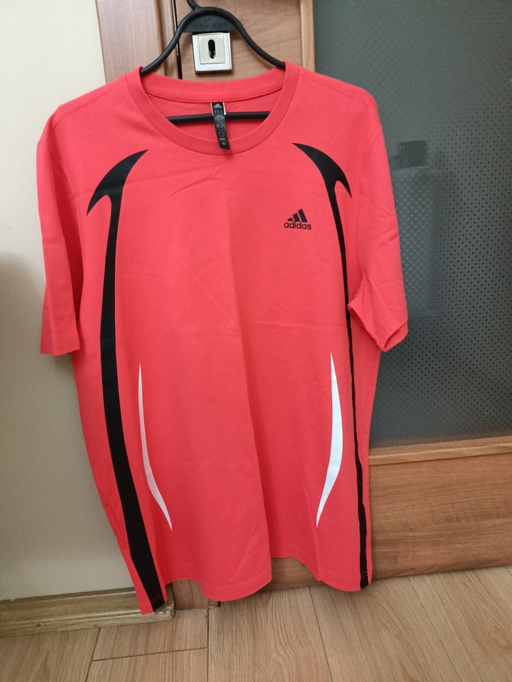 Kırmızı, baskılı, kısa kollu Adidas marka erkek tişörtü, geniş kesim ve yuvarlak yaka ile spor ve günlük kullanım için uygun. etiketi mevcut değil hiç kullanılmadı. 2xl bedene de uygun olur iki omuz arası genişlik 49 cm iki koltuk arası göğüs 63 cm boy 80 cm