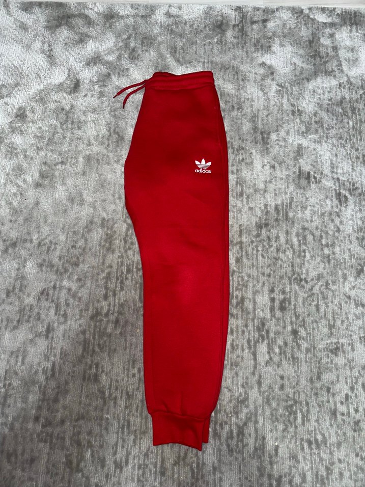 Kırmızı renkli Adidas unisex eşofman altı, kürk detaylı ve midi boyda, sportif ve günlük kullanıma uygun rahat bir modeldir.