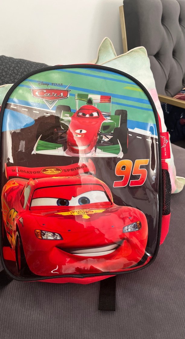 Disney Pixar Arabalar temalı, renkli ve kırmızı çocuk okul çantası, üzerinde 95 sayısı yer alıyor. Okul için uygun canlı tasarıma sahip.