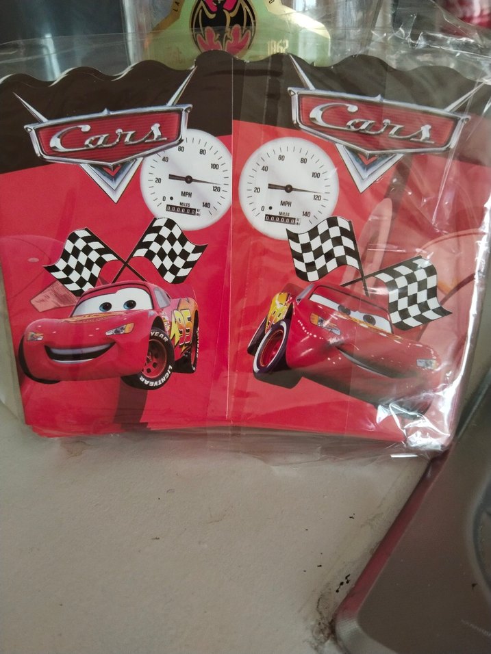 Kırmızı renkli, renkli Arabalar temalı ve damalı bayraklı parti malzemeleri. 12 adet mısır ve cips koymak için çocukların bayildigi figürler #zara#mango#dogumgunu#oganizasyon