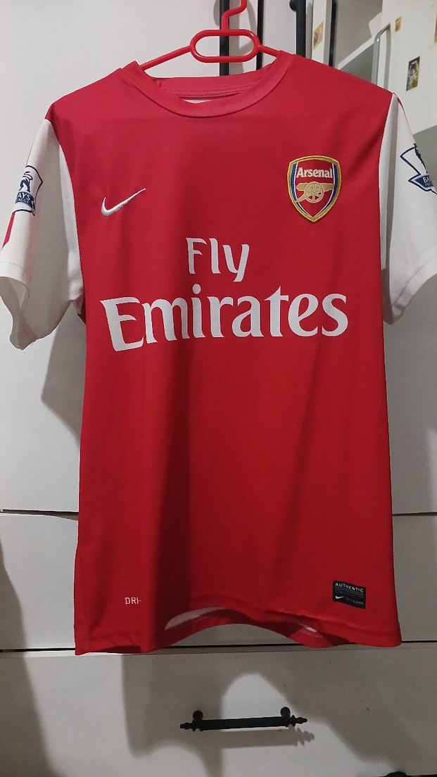 Kısa kollu, bisiklet yaka ve parlak sentetik kumaştan üretilmiş Arsenal baskılı, düğmeli, fitted erkek spor formasıdır.