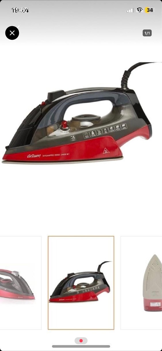 Kırmızı renkte Arzum buharlı ütü, 2400W güçlü ısıtma elemanı ve ayarlanabilir özelliklerle etkili ütüleme sağlar.