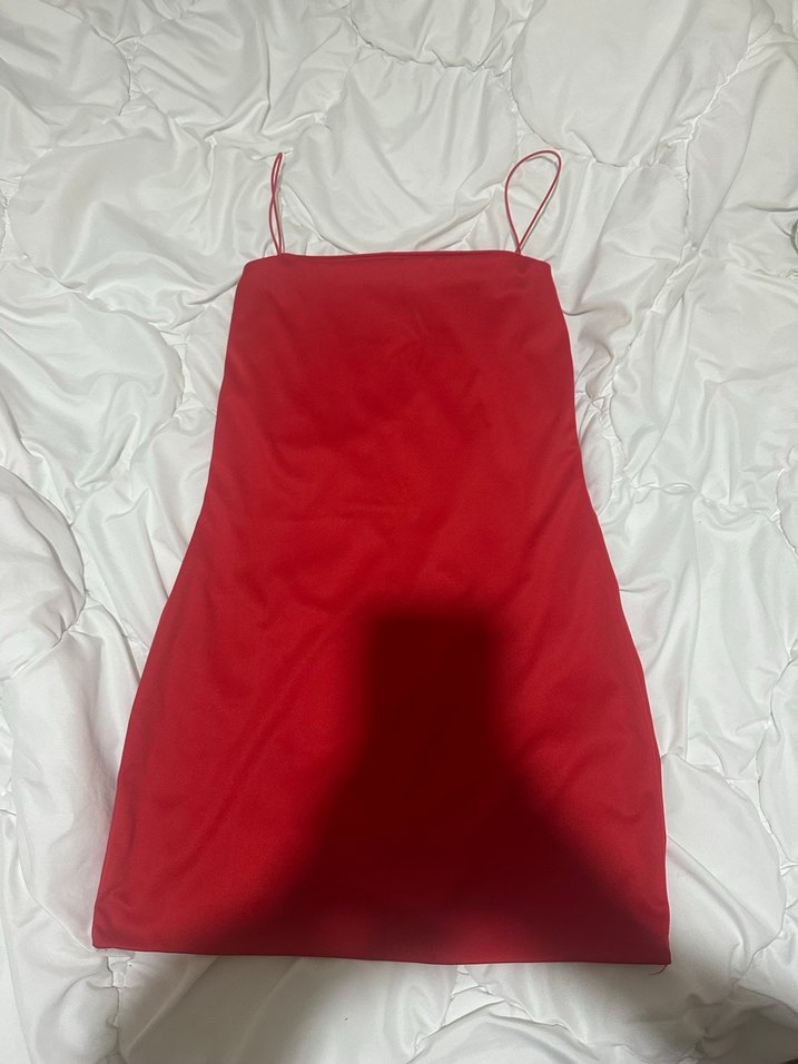 Kırmızı, parlak sentetik kumaştan yapılmış, askılı ve straplez yaka detaylı, drapeli, vücuda oturan mini elbisedir. Romantik akşamlar için uygundur. ❤️ Temiz ürün az kullanıldı