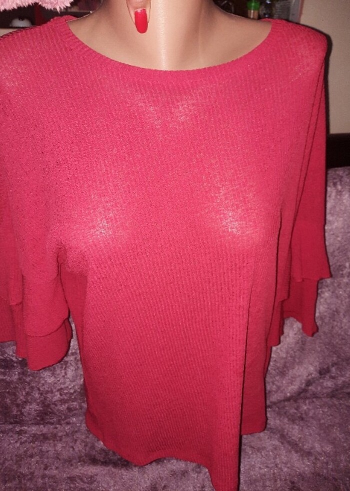 Çok esnek volanli kollu güzel bir bluz.etiket göre değil ölçüye göre alım yapınız
