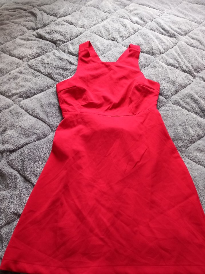 Kırmızı, askısız ve drapeli hamile elbisesi, normal midi boyda, vücuda oturan kesime sahip, yumuşak sentetik kumaştan üretilmiştir. Parti için uygundur.