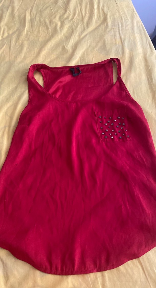 Kırmızı askısız saten bluz, göğüs cebinde düğme detaylarıyla. Saten dokulu, bol kesim, parlak ve desensiz, günlük veya romantik buluşmalar için uygun.