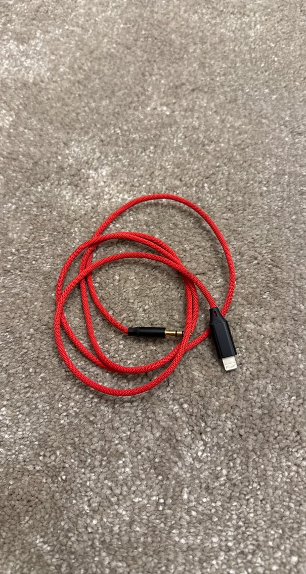 Dayanıklı örgü yapıya sahip canlı kırmızı telefon şarj kablosu. Lightning bağlantı uyumludur.