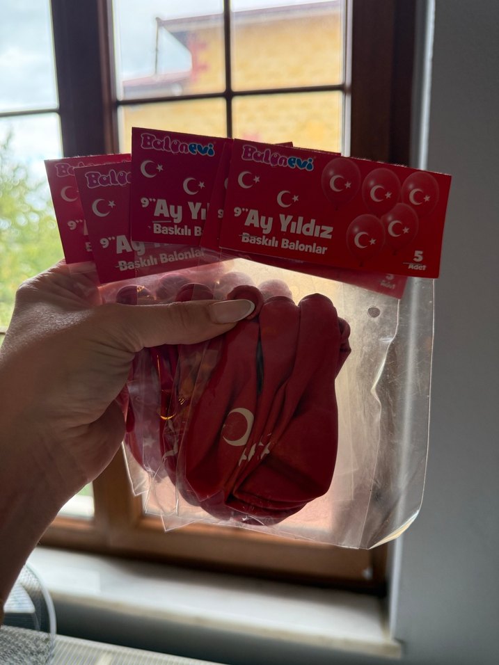 Parlak kırmızı ay yıldız baskılı balonlar, kutlamalar için uygundur. Paket fiyatıdır