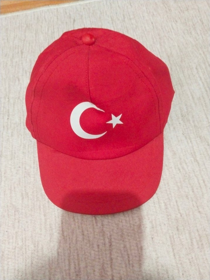 Kırmızı erkek şapka, önünde beyaz ay yıldız sembolü ile minimalist ve sade bir görünüme sahiptir. Modest ve karşı kültür tarzlarına uygundur.