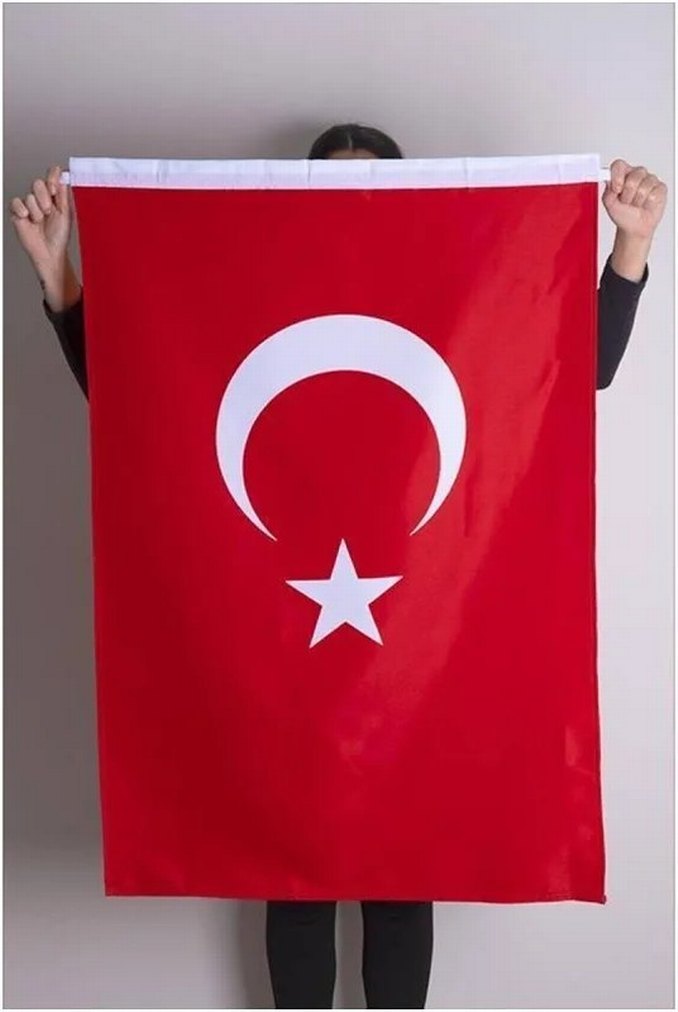 Beyaz ay ve yıldız figürlü kırmızı Türk bayrağı, dikey olarak tutulmaktadır görsel bu ürün ait değil dir