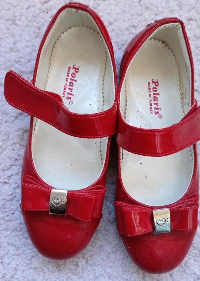 Sadece bı kaç kez giyildi. Sadece arka kısımda küçük bir deformasyon var. #beğeni #takip #kırmızıayakkabı #floayakkabı #kızçocukayakkabı #polaris