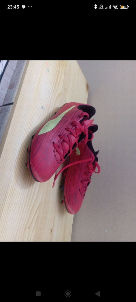 kırmızı renkli, bağcıklı erkek futbol ayakkabısı, kauçuk malzemeden, spor ve sokak stili için uygun. 38.5 numaradır
