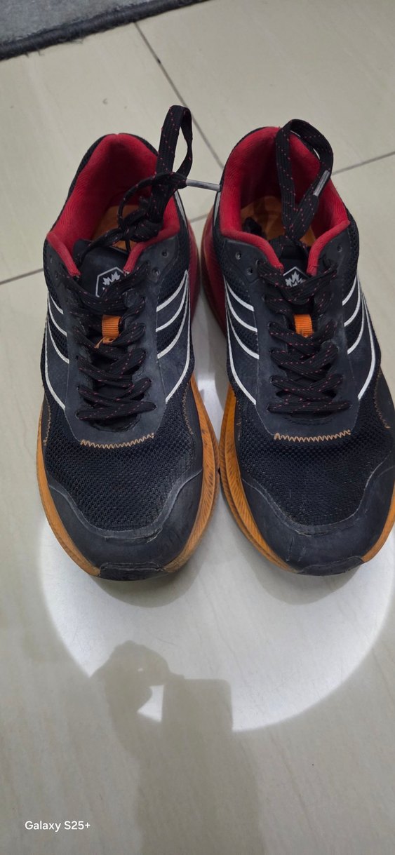 siyah, bağcıklı, kauçuk tabanlı erkek koşu ve spor ayakkabısı. Spor ve sokak stili için uygun, rahat kullanım sağlar.