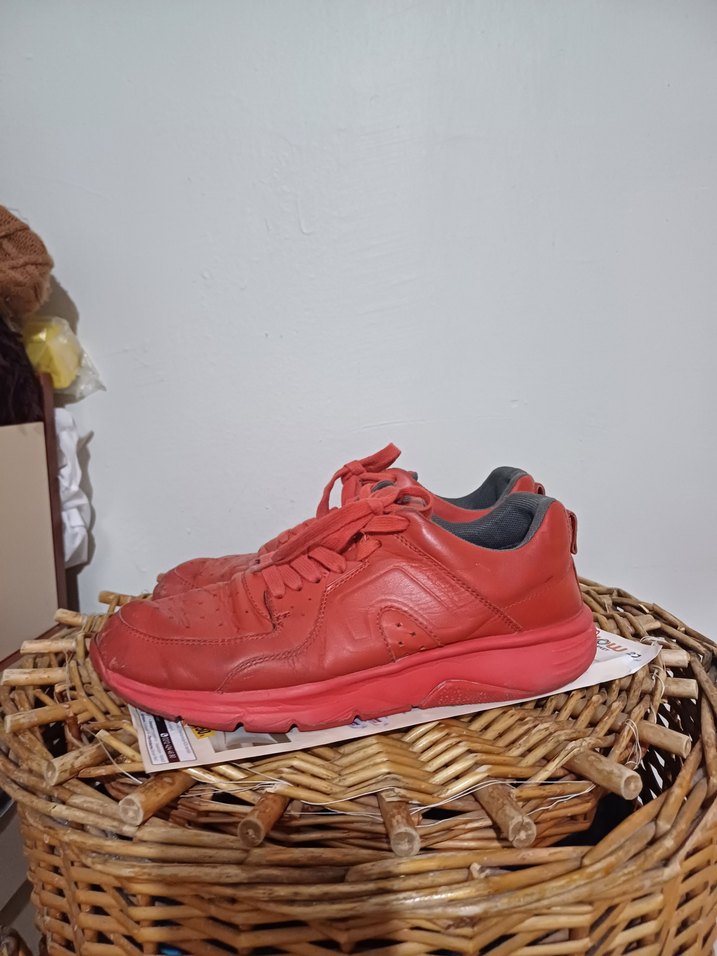 Kırmızı bağcıklı kadın spor ayakkabısı, renkli ve sokak stiliyle , kauçuk malzemeden. Trendy gündelik ve spor için uygundur.