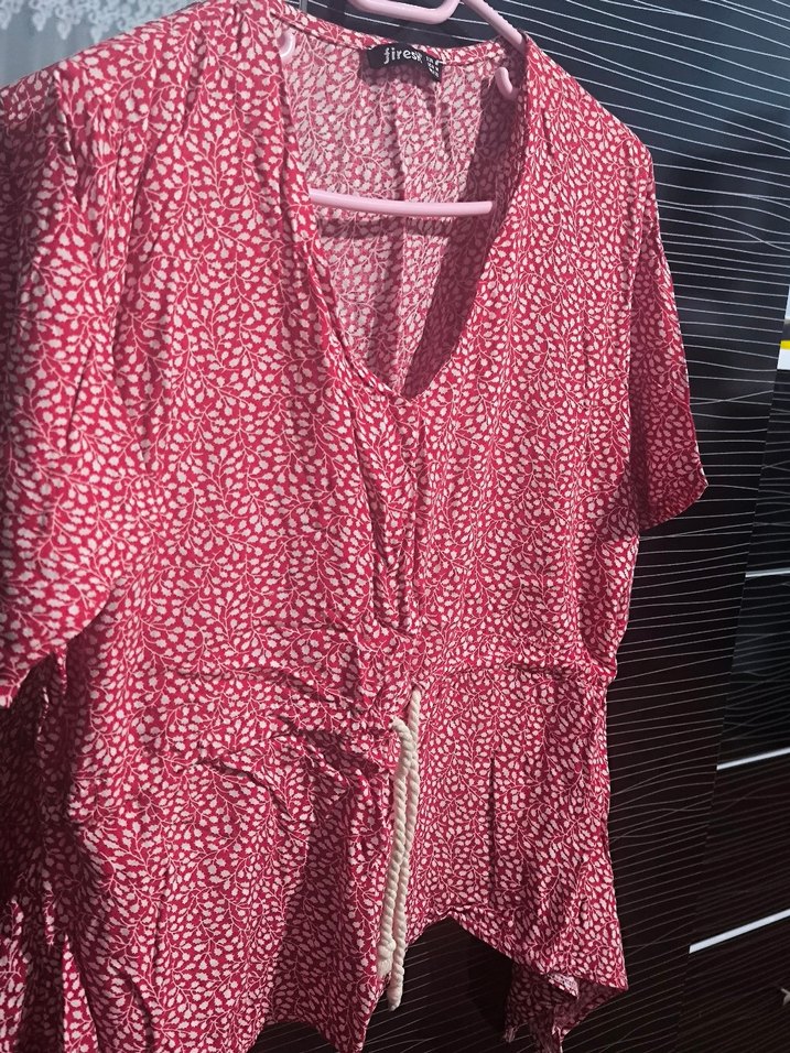 Kırmızı Bağcıklı Kısa Kadın Bluz