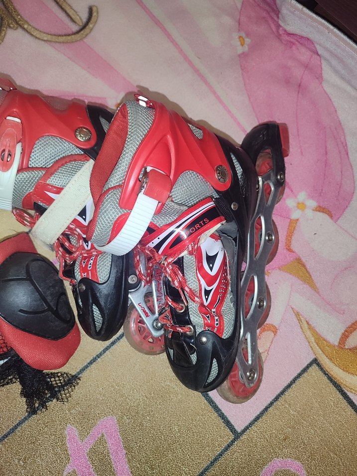 Kırmızı renkli, bağcıklı erkek spor pateni. Renkli yılan deseni ve kauçuk malzemeye sahiptir. Athleisure ve biker tarzına uygundur. yırtık kırık yok