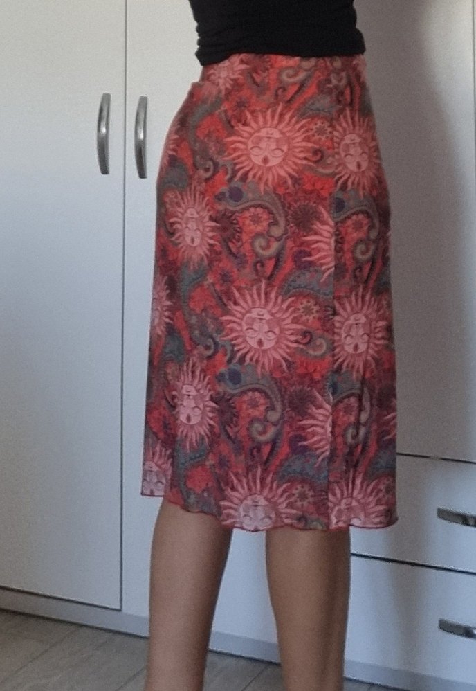 Kırmızı Bağlama Desenli Bohem Midi Etek