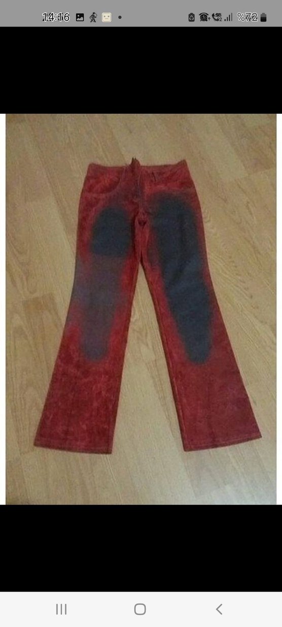 Kırmızı Bağlama Desenli Süet Kadın Pantolon