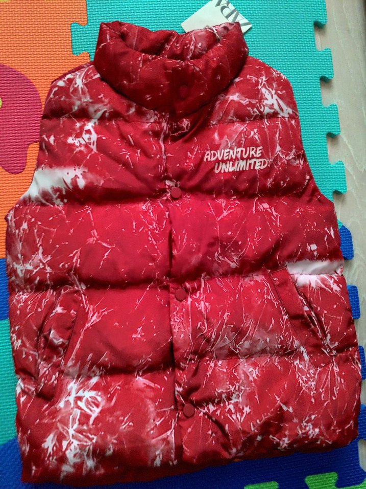 Kırmızı bağlamalı desenli, düğmeli, yüksek yakalı, sentetik kumaştan erkek yeleği. Fit kesim ve kolsuz tasarım sunar.