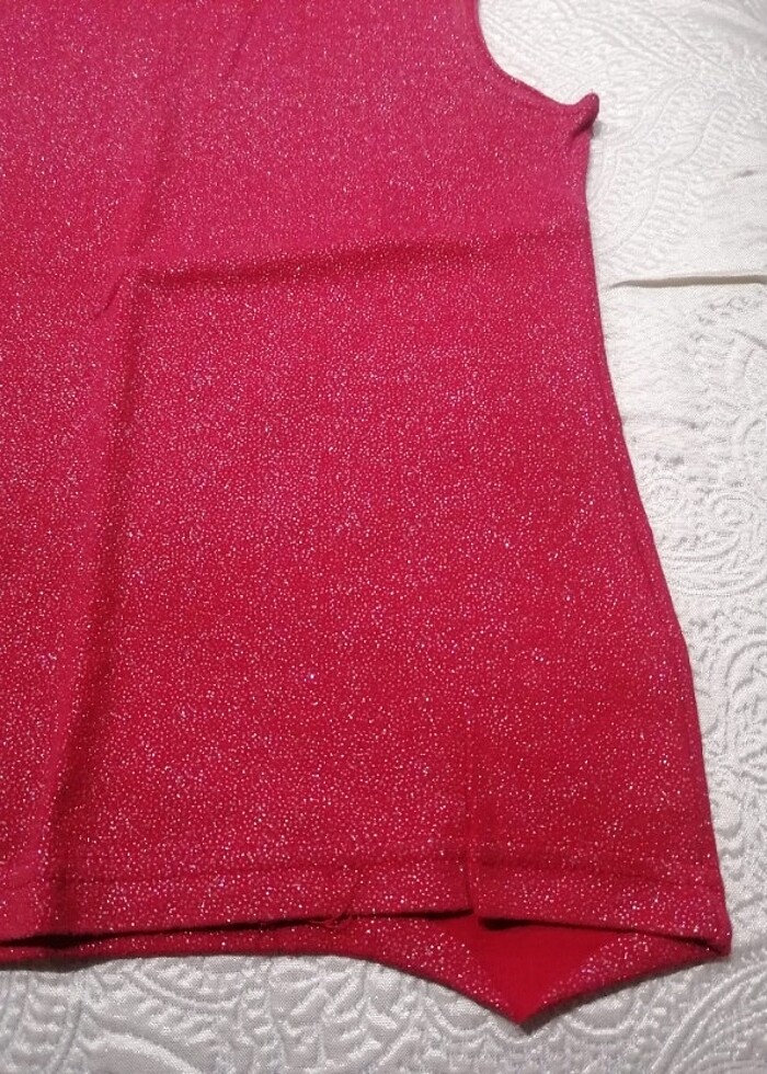 Çok şık kendinden pırıltılı canlı rengi var.Sadece alt kısmında ufak bi ip sökülmüş elde halledlilir.Başka kusuru yoktur.1 gece giydim sadece.Her mevsim giyilebilir esnektir.