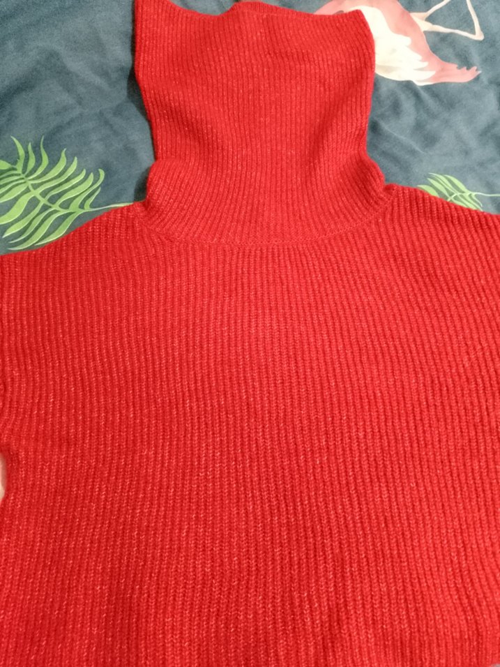 Bu kırmızı balıkçı yaka kadın kazak, triko dokusu ve uzun kollu tasarımıyla dikkat çeker. Sentetik yumuşak kumaştan üretilmiş, renkli ve desensiz, dış mekan kullanımı için uygundur.