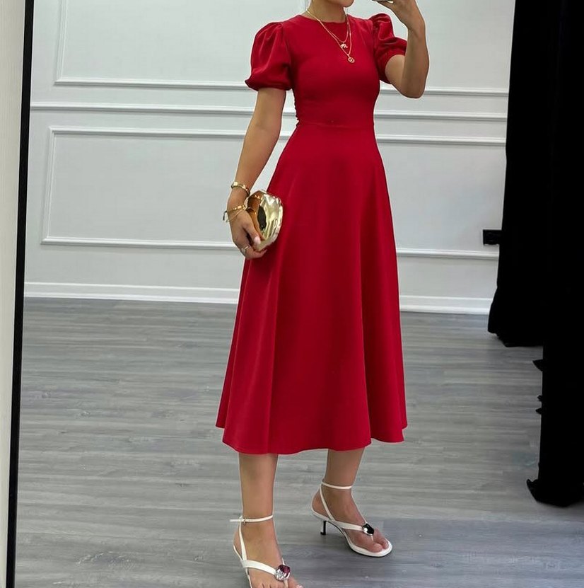 Kırmızı balon kol elbise