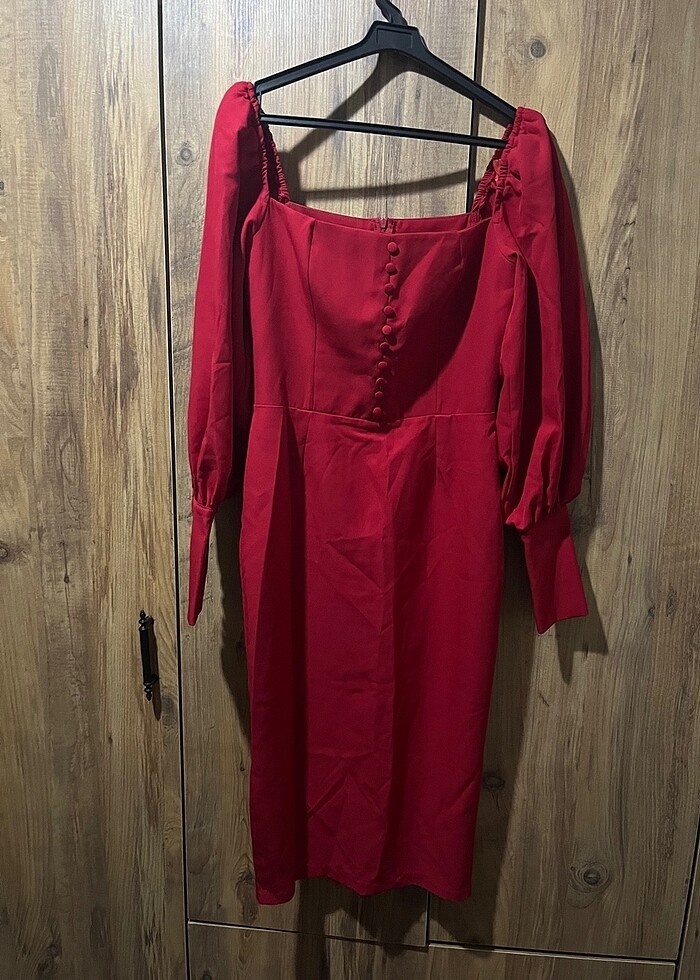 Kırmızı balon kol elbise