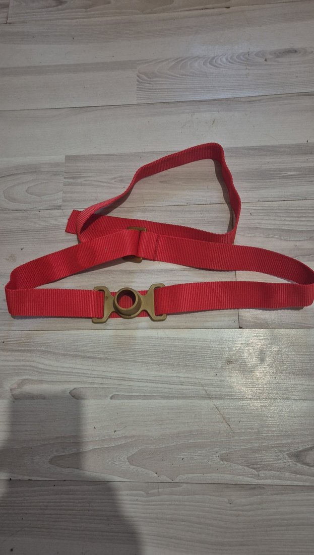 Kırmızı renkte, desensiz bando flama kayışı. Esneme ve destek için güvenli tokası bulunur. ♂️