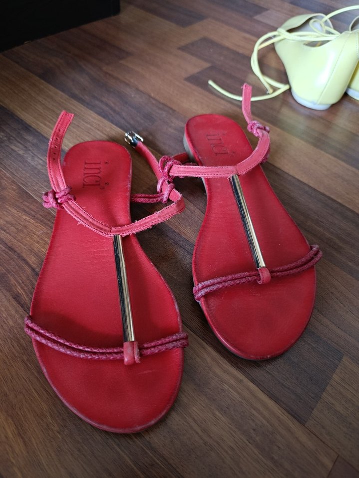 Kırmızı Bantlı Bohem Sandalet
