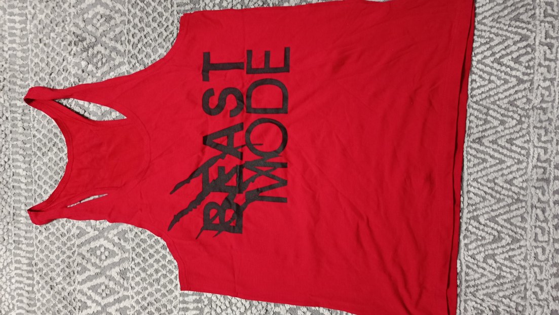 kırmızı baskılı atlet. hiç kullanılmadı, etiketi yok.