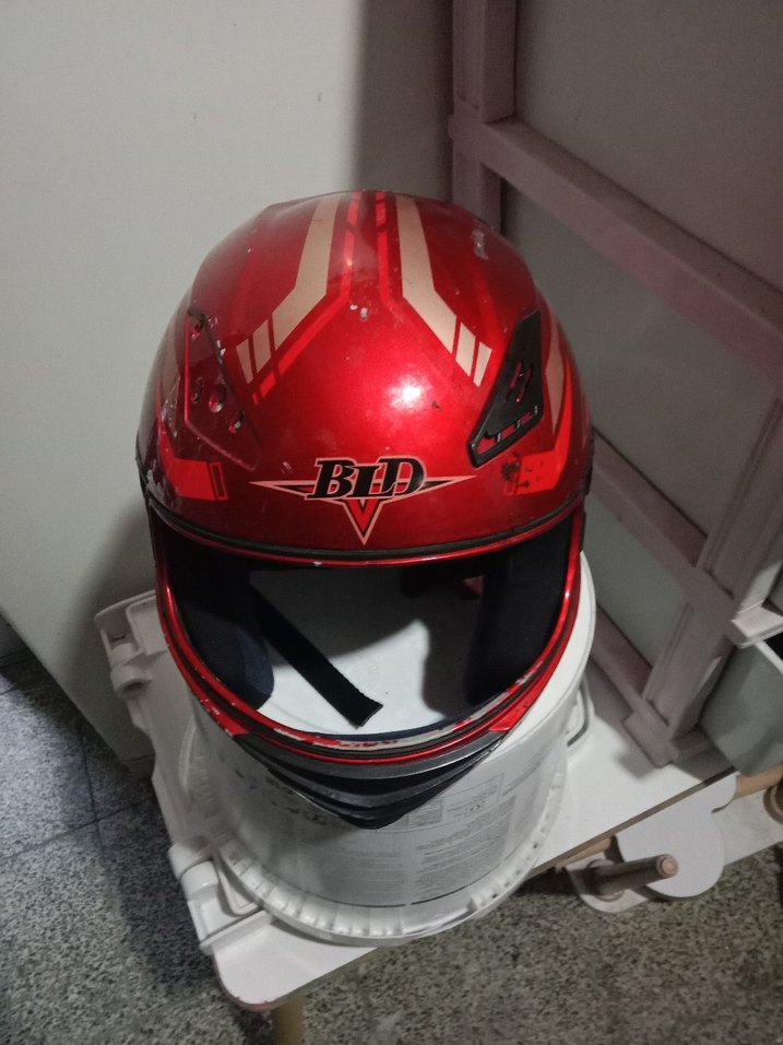 Kırmızı baskılı motosiklet kaskı, plastik malzemeden yapılmış ve tokalıdır. Cesur sokak stili için uygundur. Önde "BID" yazısı bulunmaktadır. ️