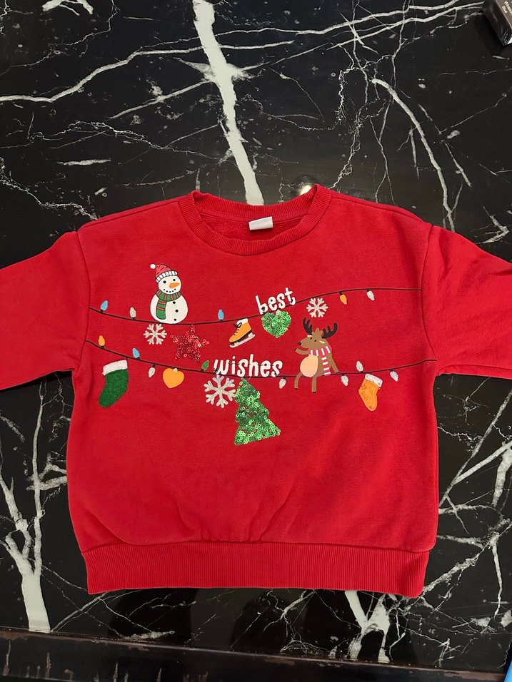 Kırmızı Baskılı Çocuk Sweatshirt