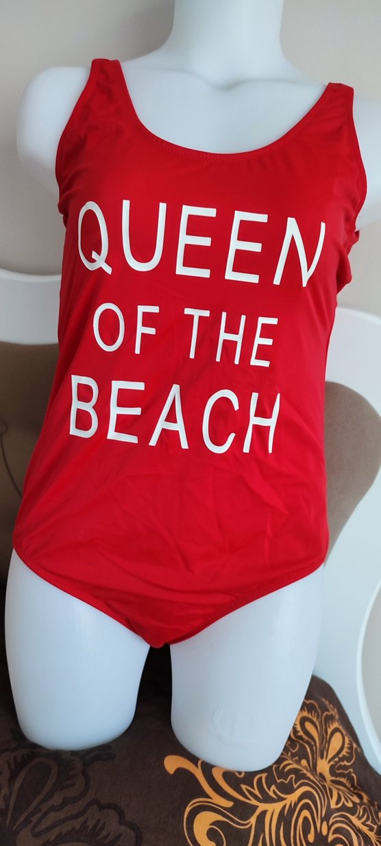 Kırmızı Baskılı Drapeli Kadın Mayo