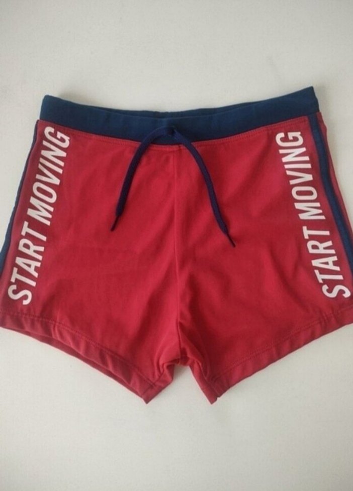 Ayarlanabilir bel bantlı, her iki yanında "START MOVING" yazılı kırmızı baskılı erkek çocuk mayo şortu. Herhangi bir sorunu yoktur... 9 yaş...