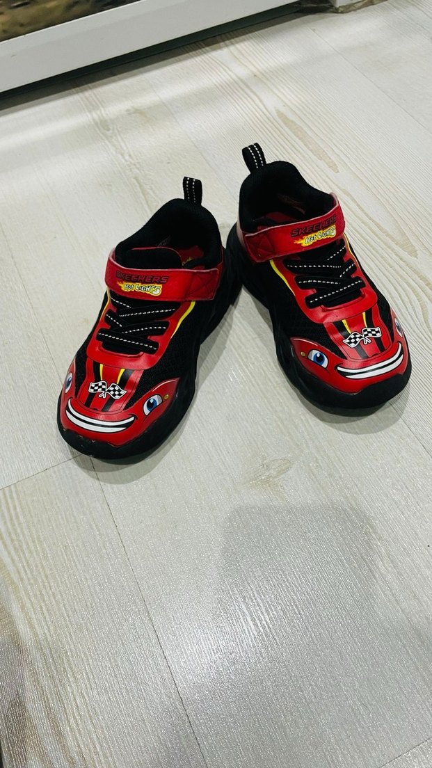 Kırmızı baskılı, renkli desenli erkek çocuk spor ayakkabısı, kolay kullanım için cırt cırtlı bantlıdır. Kauçuk tabanlı, sokak modası ve rock punk tarzını yansıtır.