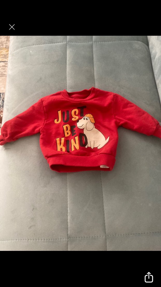 Kırmızı renkli, uzun kollu, yuvarlak yakalı ve bol kesim erkek çocuk sweatshirtü. Yumuşak, sıcak dokulu kumaştan örülüdür. "JUST BE KIND" yazısı ve köpek baskısı renkli ve baskılıdır.