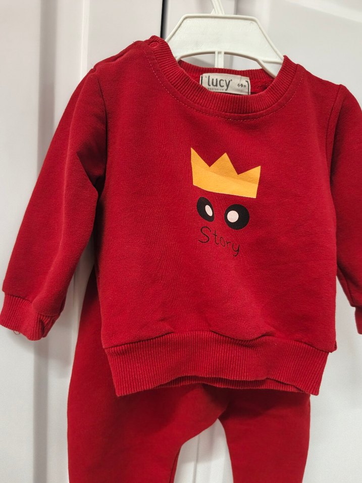 Uzun kollu, bisiklet yaka erkek çocuk sweatshirtlü takım, 6-9 ay yazıyor ama 2-3 aylıkken giydi kalıbı küçüktür.