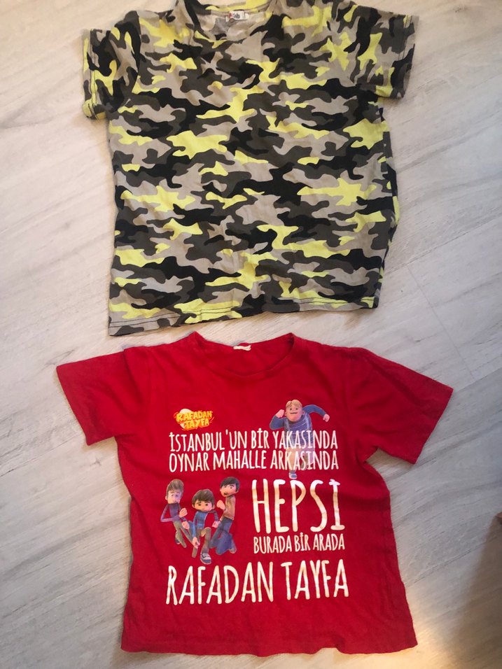 Bol kesim, kısa kollu kırmızı erkek çocuk tişörtü. Renkli baskılı sokak stili tasarım ve bisiklet yaka. Eğlenceli karakterler ve yazılar içerir.
