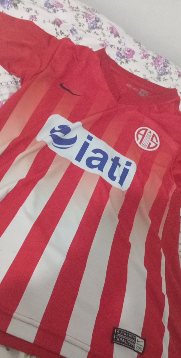 Kırmızı beyaz dikey çizgili, elastik sentetik kumaştan yapılmış, kısa kollu ve bisiklet yaka, dar kesim erkek spor tişörtü. Önünde 'Diati' baskısı bulunur. ⚽ Antalya Futbol Kulübüdür Gerçek Fiyatıdır