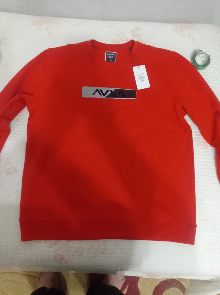 Uzun kollu, bisiklet yaka ve rahat kesime sahip kırmızı renkli baskılı erkek sweatshirt. Yumuşak ve sıcak kumaştan üretilmiştir, günlük rahat stil için uygundur.