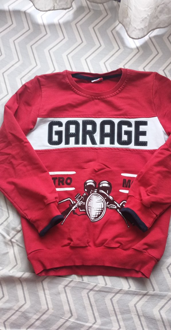 Kırmızı renkli, bisiklet yaka ve uzun kollu, fit kesim sweatshirt. Renkli baskılı motosiklet ve GARAGE yazısı bulunur. Yumuşak, sıcak kumaş ve tokalı detaylı. ️