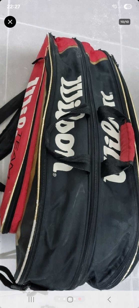 Koyu kırmızı baskılı, fermuarlı erkek spor çantasıdır. ve iki adet tenis raketi Sokak modası ve athleisure tarzına uygundur, trendsetterlar için şık bir görünüme sahiptir.