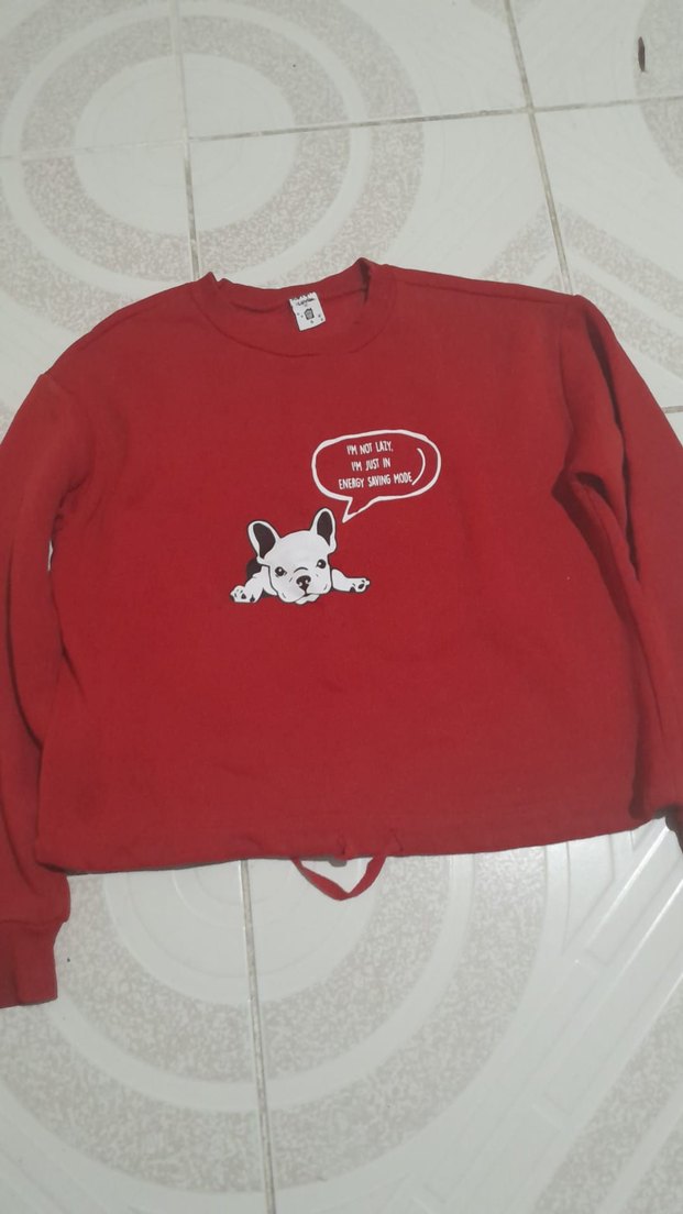 Kırmızı, baskılı hamile sweatshirt, bisiklet yaka ve uzun kolludur. Yumuşak, sıcak örme kumaştan yapılmış, bol kesimdir. Günlük rahat kullanım için uygundur.