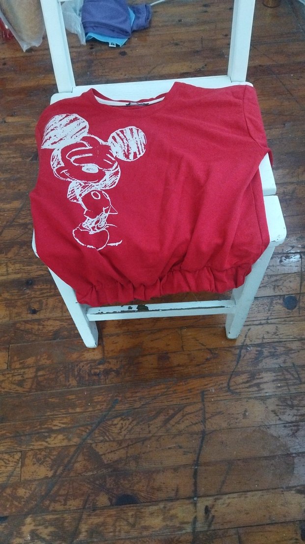Yumuşak pamuktan üretilmiş, baskılı desenli, kısa kollu, yuvarlak yakalı, bol kesim kırmızı hamile tişörtü. Etek kısmında fırfır detayı bulunur.