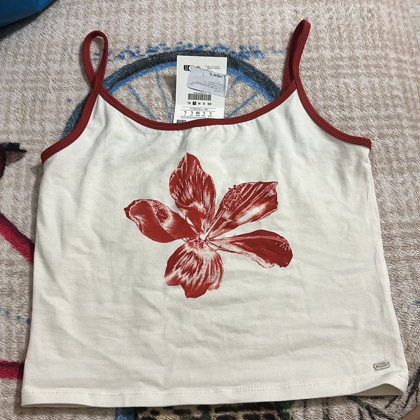İnce askılı, straplez yaka kırmızı çiçek baskılı, vintage bohem tarzda kadın atlet.