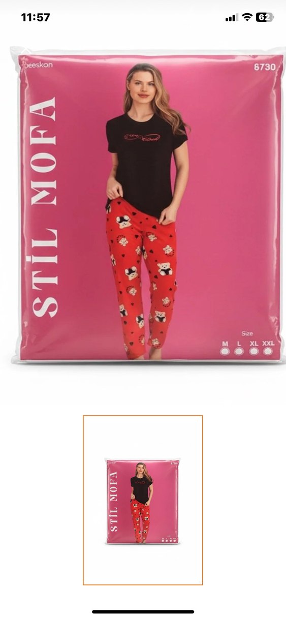 Kırmızı ve ayıcıklı xl D dondurmalı L beden Pembeli xl xxl Mor M beden Kısa kollu, bol kesim kadın pijama takımı, kırmızı baskılı midi boy pantolonlu. XL ve XXL beden seçenekli, rahat ve konforlu tarz. Mor