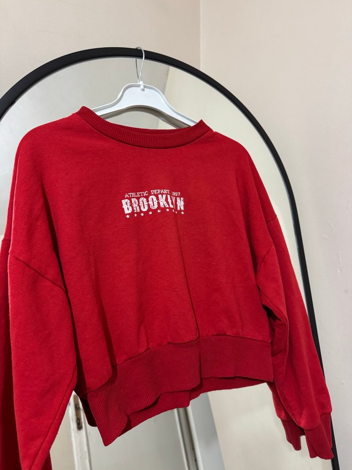 Renkli kırmızı sweatshirt, yuvarlak yaka ve uzun kollu, bol kesimdir. Baskılı desenli ve yumuşak, sıcak kumaştan üretilmiştir. Spor ve rahat tarzlar için uygundur. ♀️