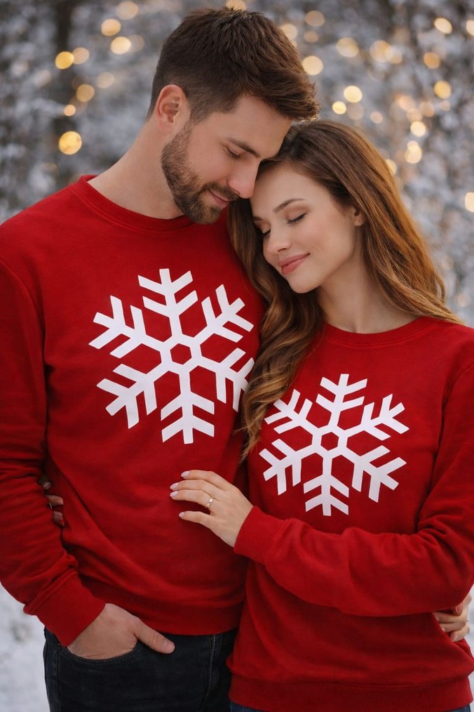 Kırmızı, baskılı kar tanesi desenli, fitted kesim kadın sweatshirt. Uzun kollu, yuvarlak yaka ve yumuşak örme kumaşlıdır. Romantik akşamlar için uygun. ❄️ Sevgili kombini