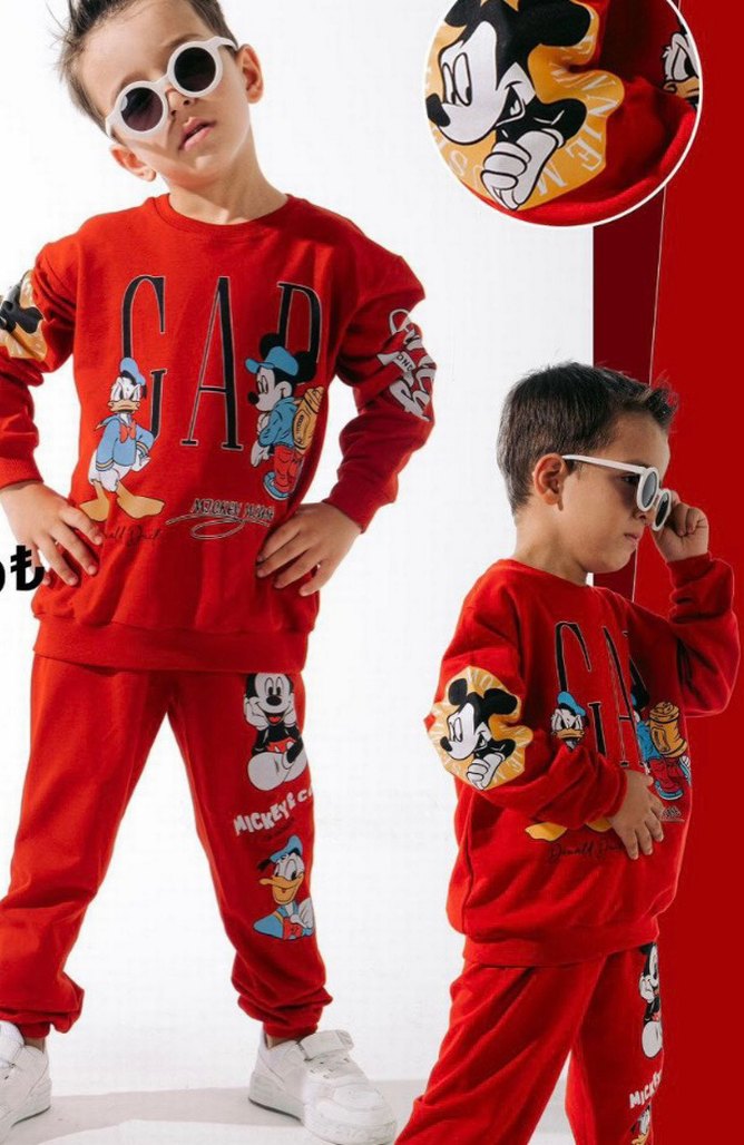 Kırmızı Baskılı Kapüşonsuz Erkek Çocuk Eşofman Takımı