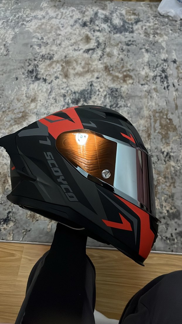 Kırmızı Baskılı Kayışlı Biker Motosiklet Kaskı